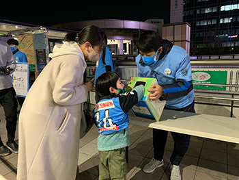 ※溝の口駅前での募金の呼びかけにご協力いただける皆さまは、できる限りフロンターレのシャツ等を身に着け、当日現地に直接お越しください。またマスクは必ず着用いただき、少しでも体調不良の方はご参加を控えていただきますようお願いいたします。