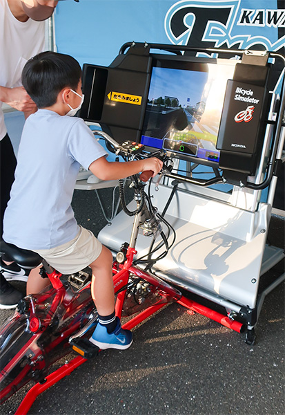 自転車走行を疑似体験できる「自転車シミュレーター」を使って、道路状況に応じた自転車の安全な利用方法を身につけましょう!
