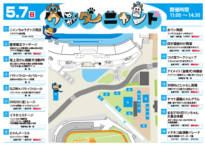 ただ、そこは言ってもフロンターレ。普通にイヌネコと触れ合うだけのイベントではつまらない、ということでダジャレ大好きクラブとしての本領を今回も発揮したバラエティ豊富なイヌネコ企画をラインナップ!