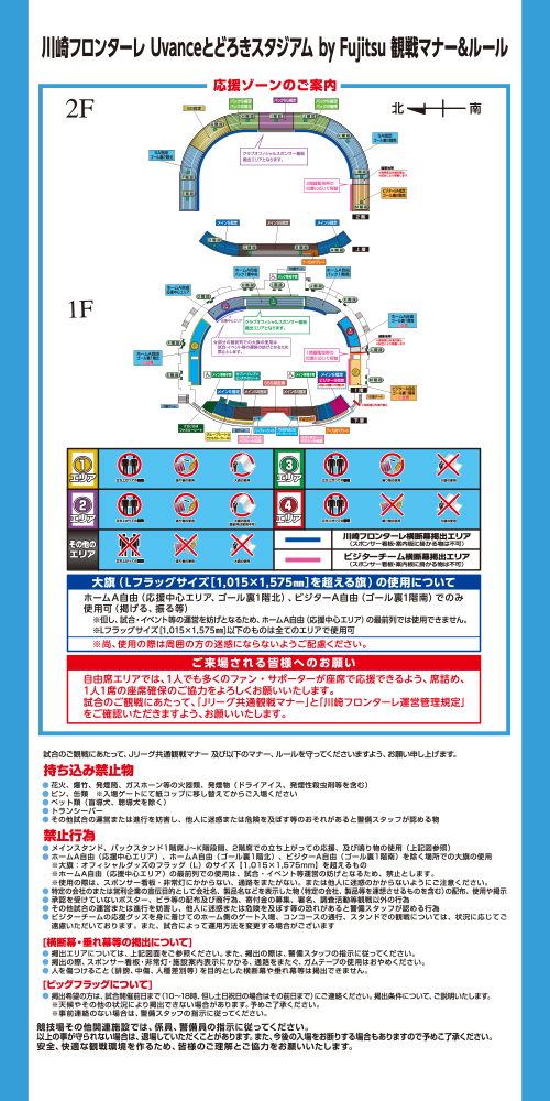 川崎フロンターレでは、『安全・安心・快適』なスタジアムを目指し引き続き、尽力いたします。皆様のご理解とご協力をお願い申し上げます。