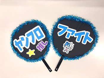 ※応援テキスト+マスコットイラストなどが、うちわづくりの素材となります。選手写真およびネームテキストのご用意はございません。材料の持ち込みも不可としますのでご了承ください。