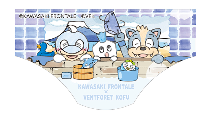 川崎フロンターレマスコットとヴァンフォーレ甲府マスコットのヴァンくんが“混浴”しているデザインのフェイスタオルになります。