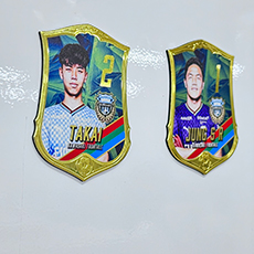 ゲームで出てきそうなデザインのプレイヤーマグネットです。ゴールドにキラキラと輝く選手を冷蔵庫やホワイトボードに貼り付けましょう!!