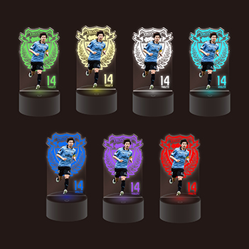 コレクショングッズとしてのアクリルスタンドが進化した、台座から照らされる光によってエンブレムなどが輝くライトアクリルスタンドです。7色の光対応なので、好きなカラーにして選手を照らしましょう!