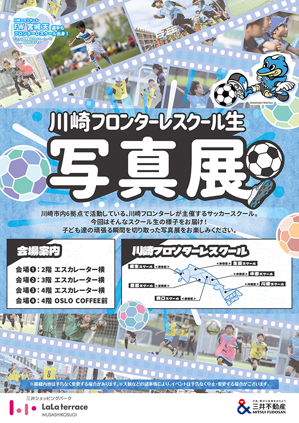 この度、「ららテラス 武蔵小杉」にて、川崎フロンターレ スクール生写真展を開催することとなりましたので、お知らせいたします。