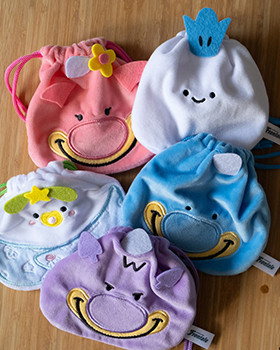 フロンターレのマスコットたちがデザインされたポーチがフロンターレブルーになり、さらにかわいくなっています。目元や輪郭など少しデフォルメしていたり、それぞれのマスコットのイメージに合わせてジップ部分の色が違うのもポイントです!