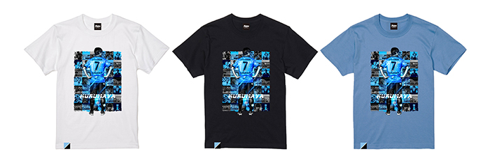 前面にはメインビジュアルをベースに、背面には背番号の7と同じくシンタロウと共に勝ち取ってきた7つの星がデザインされています。青黒を背負ってきたシンタロウを表現するチェック柄となっています。