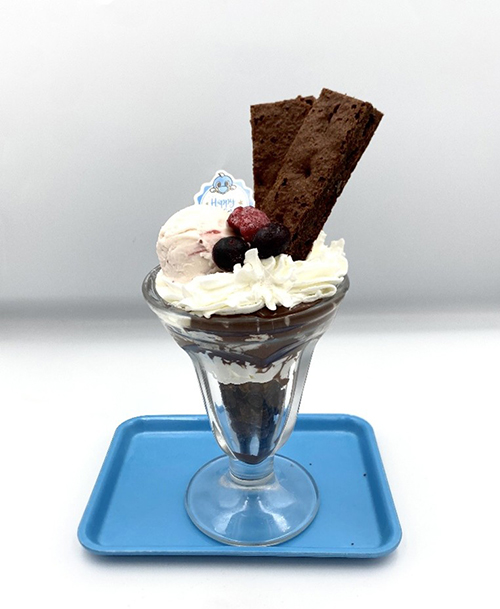 チョコクランチ、自家製チョコプリン、ブラウニーが入ったチョコレート尽しのパフェです。