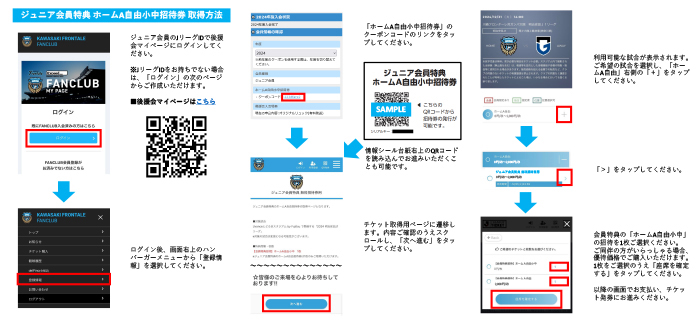 川崎フロンターレ公式ファンクラブ〈後援会〉ジュニア会員特典の「ホームA自由小中招待券」のご利用方法について、下記の通りご案内いたします。