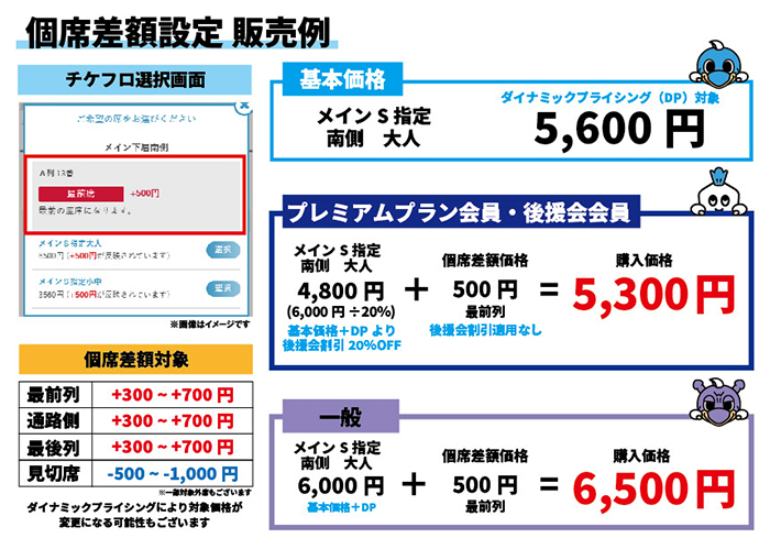 従来の席種単位の価格変動に加え、「個席差額設定値」を席価格に反映する試みを実施いたします。