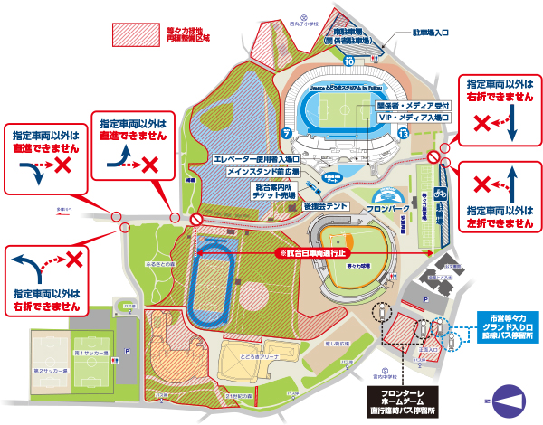 川崎フロンターレ主管のホームゲーム開催日において、来場者の安全への配慮からUvanceとどろきスタジアム by Fujitsu正面の園路につきましては、車両通行止となりますので、お知らせいたします。