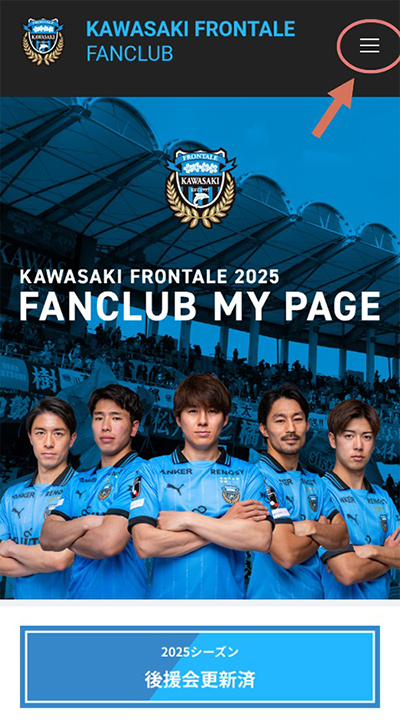 1. ファンクラブ〈後援会〉マイページへログインし、メニューバーをタップ