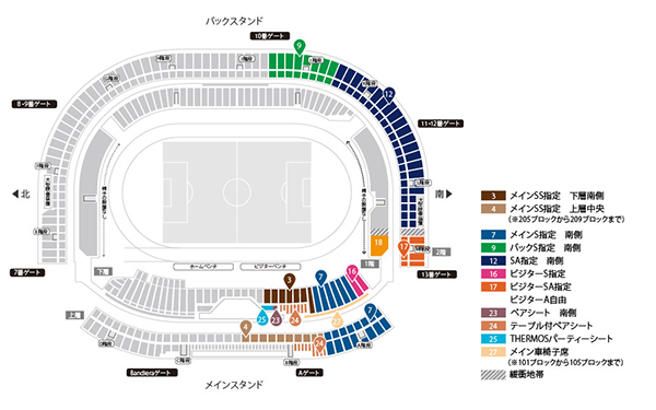 ※各入場ゲートに設けられた「再入場ゲート」より、一時退場および再入場が可能となります。ただし、一時退場についてはキックオフ30分前までとなりますので、ご注意ください。