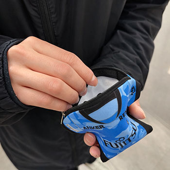 500mlのペットボトルが入る、定番のペットボトルホルダー。水滴もこちらでカバーできるので、バッグの中に入れても濡れる心配なしの万能グッズです。
