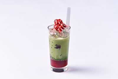甘さを抑えた抹茶みるくに特製かわさきいちごジャムがいいアクセントに!開発者一推しですっ!