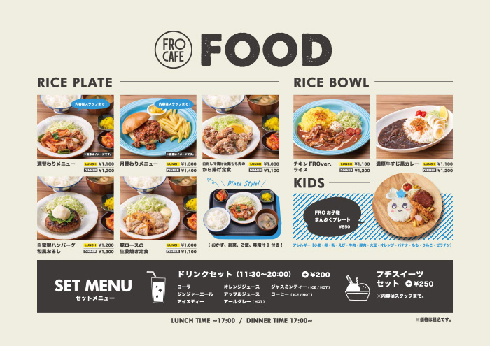 | FRO PRICE | LUNCH ¥1,000 DINNER ¥1,100 |
