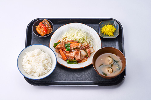やわらかく焼き上げた豚ロースに、生姜の香り豊かな特製だれを絡めました。