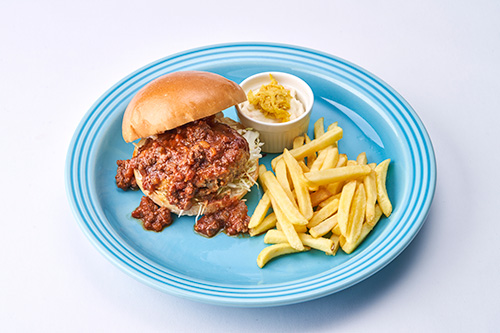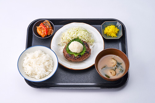 ふっくらジューシーに仕上げた自家製ハンバーグ。
