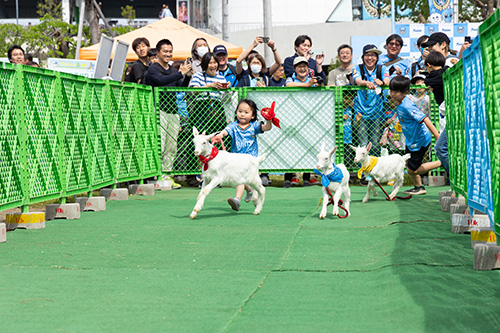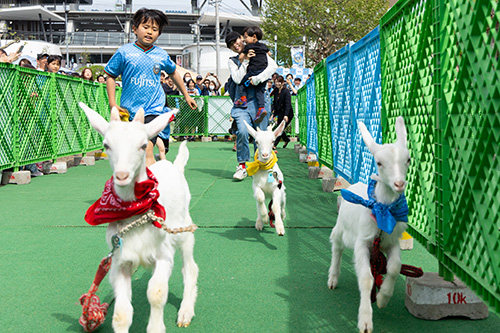 フロンターレ牧場の大人気企画、生まれたての子ヤギたちによるどうぶつかけっこを今年も実施します!