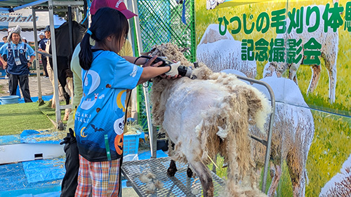スタジアムで羊の毛を刈り取る体験はここだけ!? ふわふわの羊毛を刈り取ってみよう!