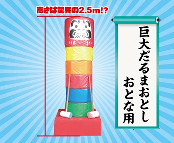 そんなだるまが、昨年に続き巨大だるま落としとなってフロンパーク(野球場前広場)に登場!! おとな用の高さは2.5mと迫力満点です!!