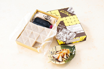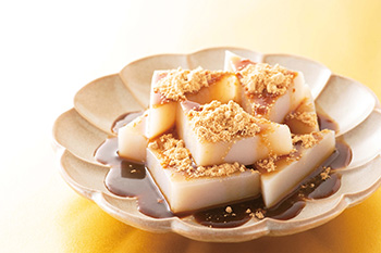川崎大師名物である川崎大師山門前 住吉さんの「久寿餅」は良質な小麦粉のデンプンを湧水で約400日発酵させ、熟練の職人による技で蒸しあげられています。