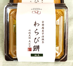 昔ながらの製法にこだわり、銅釜でじっくりと練り上げた独自の粘りと食感を持つわらび餅を販売しています。