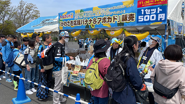 | 内容 | 「かわさき応援バナナ」「かわさき応援アボカド」の販売。 限定1,000セット ※雨天の場合、セット数が少なくなる場合がございます。 |