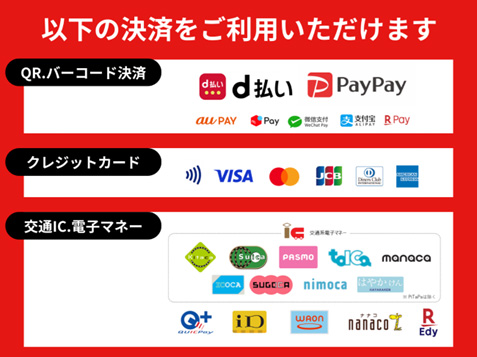 | お支払方法 | 現金とキャッシュレス決済が可能となっております。