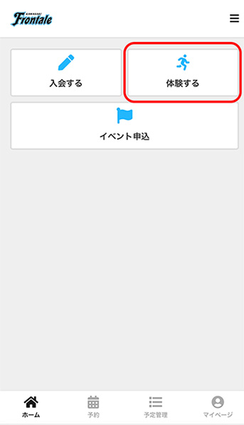 「体験する」>「店舗選択」よりご希望の会場、クラス、体験したい日にちを選択し、「トライアル予約する」よりお申込みください。