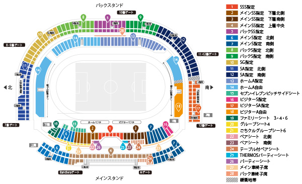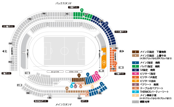 ※各入場ゲートに設けられた「再入場ゲート」より、一時退場および再入場が可能となります。ただし、一時退場についてはキックオフ30分前までとなりますので、ご注意ください。