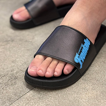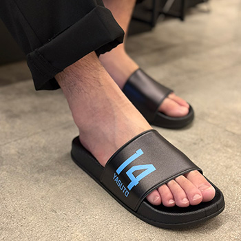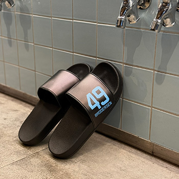 使いやすいブラックをベースに各選手ネーム・ナンバーを側面にデザインしたシャワーサンダルです。スポーツのクールダウン時やベランダで使用するなどにオススメです!