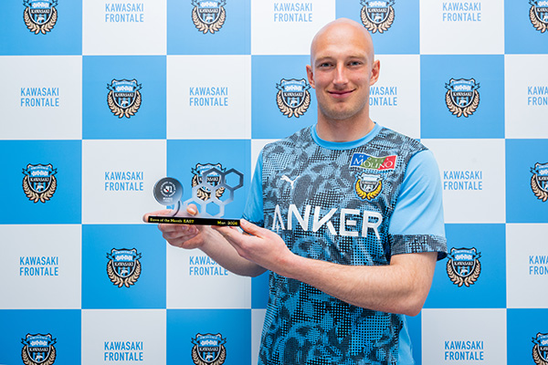各月の明治安田Jリーグ百年構想リーグにおいて、活躍した選手を表彰する「月間ベストセーブ」の3月度の受賞選手が決定し、J1 EASTではスベンド ブローダーセン選手が受賞いたしましたので、お知らせいたします。