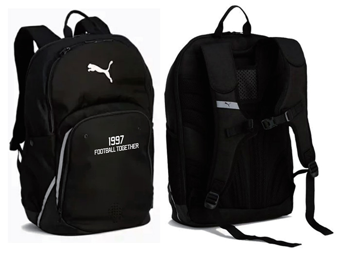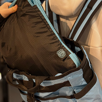 撥水/防汚素材を内側に使用し汚れ物を入れても汚れが付きにくい。外側には、耐久性があり強度の高いナイロン素材を採用。アウェイゲーム観戦や日常使いにも最適なバックパックです。