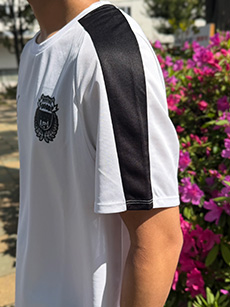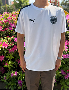 軽さとストレッチ性を両立させた機能素材が、トレーニング時の動きにも日常の移動にもスムーズにフィットします。吸水アクティブなシーンでも快適さが持続。両袖に配したT7ラインがスポーティな存在感を演出し、右胸のキャットロゴと左胸のエンブレムがフロンターレをアピールできます。