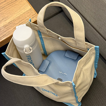 コンパクトなサイズ感ながら、ペットボトルなども収納できるキャンバス地のトートバッグです!