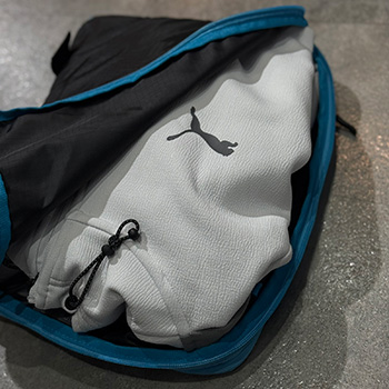 アウェイ遠征時や旅行の時にかさ張る衣類。ユニフォーム、観戦後の服、観光の服...。ギュッとこれにまとめて持って行きましょう! アイテムごとに分けて入れた後はファスナーでゆっくり閉めていくだけ。汚れが目立ちにくいブラックをベースにチームカラーのフロンターレブルーをファスナー色などに採用しました