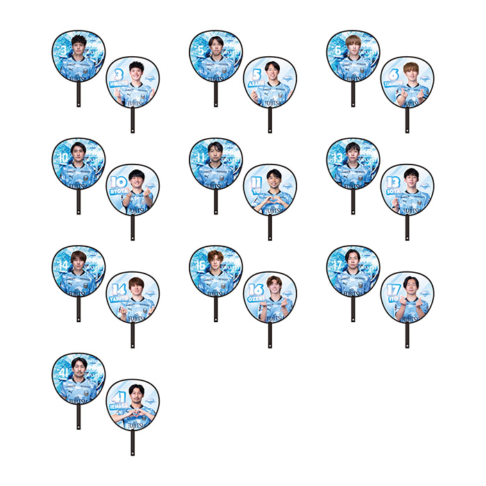 応援グッズにもなる選手のジャンボうちわです。ニコっと笑顔の選手たちがデザインされたジャンボうちわをスタンドからピッチに掲げて選手にアピールしましょう!