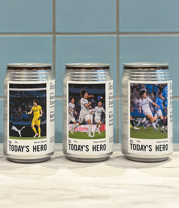 試合日や選手名など記載されたオリジナル缶は、喜びの勢いのままグイっと飲んでも良し、ご自宅で飾って最高の喜びを保管(缶)しても良し。缶に張り付けられた台紙は二重シールになっており、飲用後にシールとして利用できます。