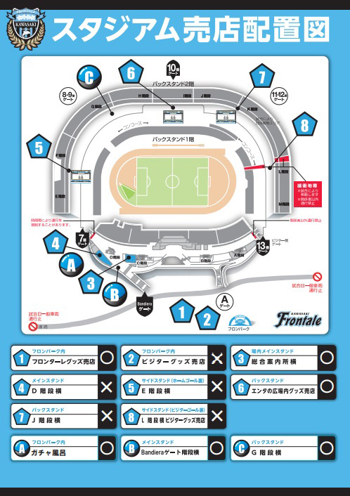 TEL 044-767-6111(営業時間 11:30~21:00/月曜定休 ※月曜日が祝日の場合は翌火曜日がお休みとなります。またホームゲーム等開催日は変更の可能性あり)