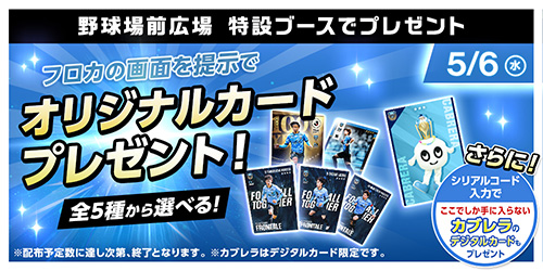 さらに今回は「カブの日」記念でカブレラの限定デジタルカードもプレゼント。カードの裏面に記載されたシリアルコードをフロカ内で入力しGETできます!!
