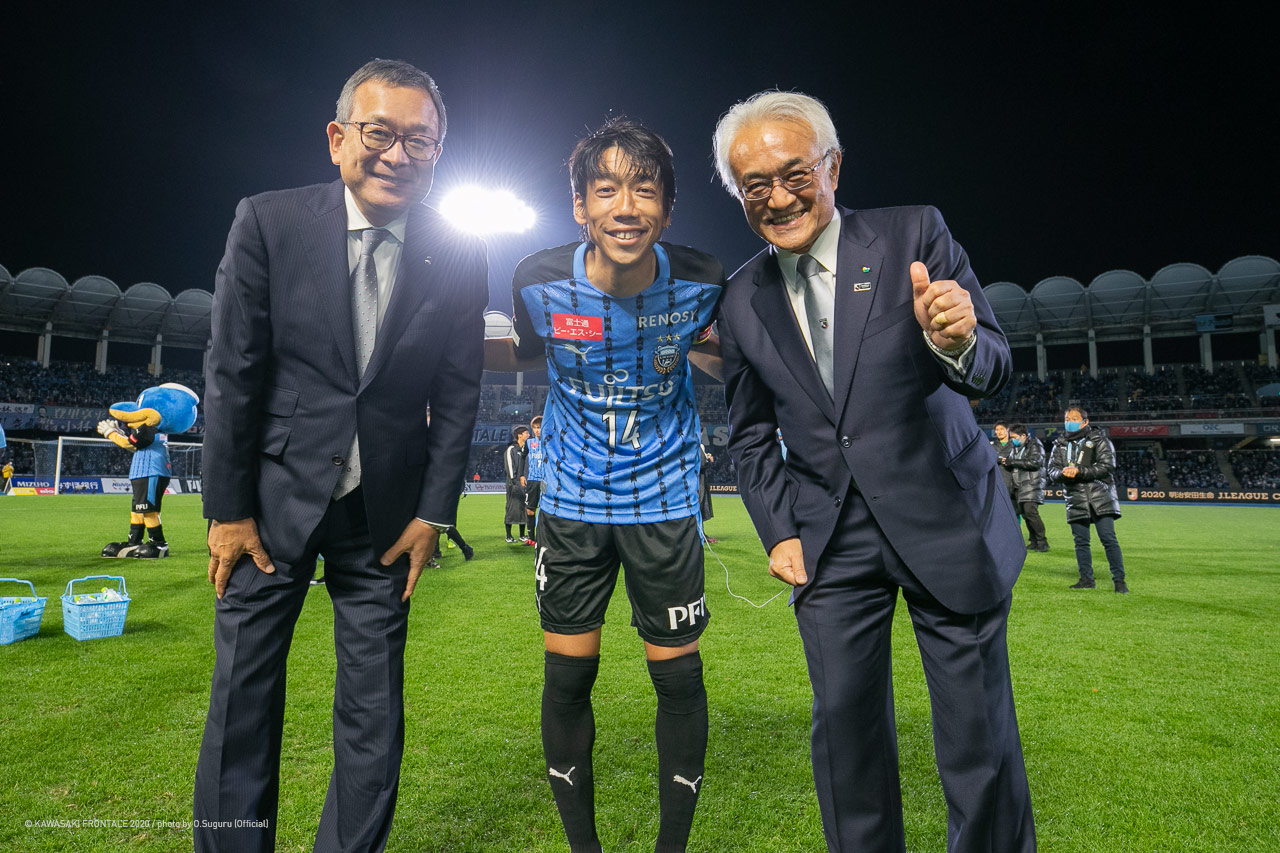 これから先、ケンゴのようにひとつのチームでこれだけ長くプレーする選手は出てこないんじゃないかなと思っています。来年から選手としてチームを支える形ではなくなりますが、ケンゴのフロンターレ愛は変わらないと思うので、クラブの仲間としてフロンターレと成長してもらいたいと思います。あとは日本サッカーの発展のためにも、いろいろな形で尽力してもらいたいです。